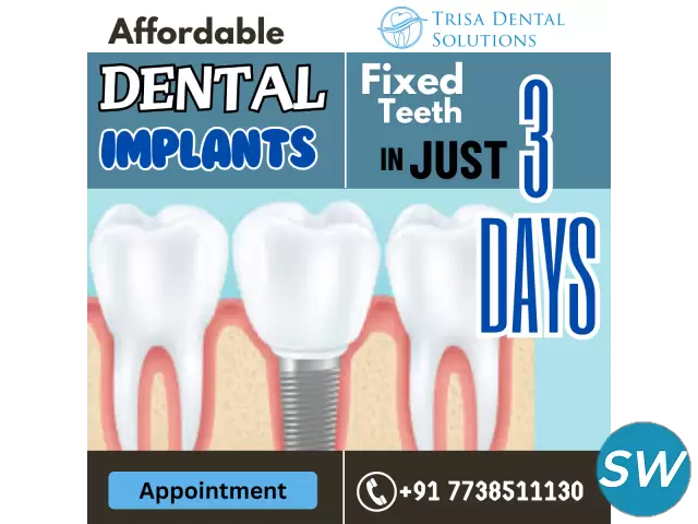Say goodbye to long dental procedures! With Teeth in an Hour at Trisa Dental Solutions, you can get instant dental implants with no incisions, no sutures, and minimal discomfort.