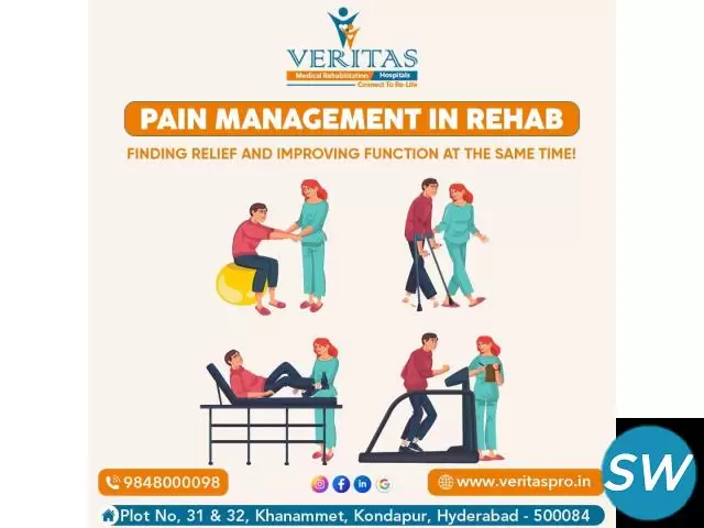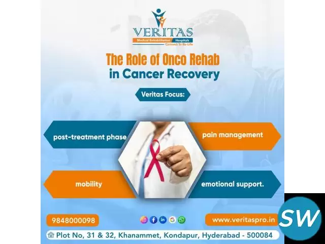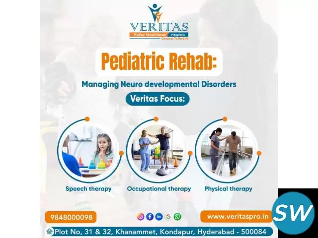 Veritas Hospital, located in Kondapur, Hyderabad, is a leading rehabilitation center offering specialized care in neuro, ortho, cardiac, pulmonary, pediatric, geriatric, and post-operative rehabilitation. Our expert team provides physiotherapy, occupational therapy, speech therapy, and personalized recovery plans to help patients regain mobility and independence. Contact us today for advanced rehabilitation services!