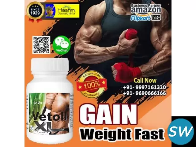 Obesity is like a pandemic these days but being underweight is no less a problem in itself. Vetoll XL (manufactured by Hashmi Unani Pharmacy a GMP certified company) is natural weight gain capsules which allow people to achieve healthy weight and charming body figure in a safe way. Vetoll XL natural weight gain supplements address all the causes which prevent a person from gaining healthy weight. These natural weight gain capsules establish healthy fat metabolism and promote growth of lean muscles mass. People consume fatty diet and try to increase their food intake in order to gain weight; these efforts go in vain mainly because of two reasons. People are anorexic because their body cannot digest food properly and secondly nutrients are not utilized by the body efficiently.