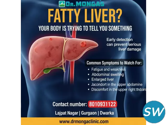 Confused about which doctor to consult for fatty liver? A specialist who understands liver metabolism and holistic care is crucial. At Dr. Monga Medi Clinic, patients receive expert consultation for fatty liver from experienced liver health doctors who focus on identifying the root cause. Whether your fatty liver is due to lifestyle, obesity, insulin resistance, or elevated cholesterol, timely consultation can prevent complications like fibrosis or cirrhosis. The clinic provides accurate diagnosis, diet counselling, herbal medications, and long-term guidance for liver recovery. If your reports show high SGPT/SGOT, Grade 1–3 fatty liver, or if you are experiencing discomfort, it’s time to consult a liver specialist. Dr. Monga Medi Clinic ensures safe and result-oriented treatment for all stages of fatty liver. For appointments or guidance, call 8010931122.