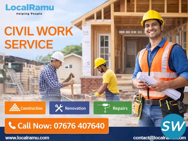 Book your civil works service with LocalRamu today and ensure well finished spaces.