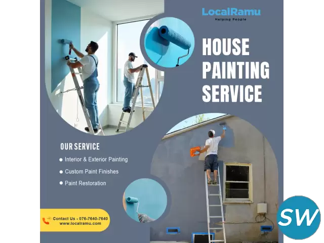 Walls peel, fade, or show cracks LocalRamu supplies professional house painting with skilled painters in Bangalore. Transform interiors and exteriors with premium paints, and hassle-free service.