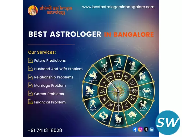 Shirdi Sai Krupa Astrologer is a renowned astrology service in Bangalore, led by a highly experienced and knowledgeable astrologer. With years of expertise in Vedic astrology, we provide personalized readings and guidance to help you understand your life's path and make informed decisions. Our services include horoscope reading, palmistry, numerology, and more.
