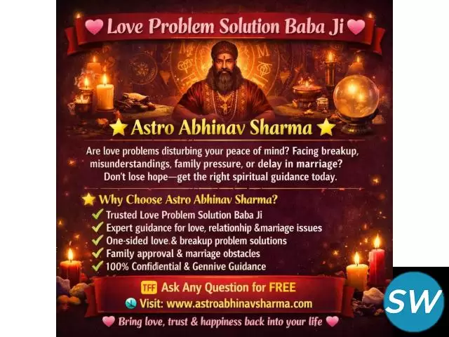 Love Problem Solution Baba Ji, guided by Astro Abhinav Sharma, specializes in solving love and marriage problems with trust and transparency. Whether it is relationship conflicts, delayed marriage, family pressure, or communication gaps, get clear and effective guidance. Free consultation available for genuine seekers. Contact today and experience professional support for lasting love solutions.