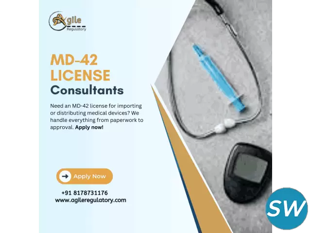 If you're selling medical devices in India, you need an MD-42 License to operate legally. We make the process simple and hassle-free! Our experts handle everything—from documentation to approval—so you can focus on growing your business. Whether you're a distributor, importer, or wholesaler, we ensure a smooth registration process with quick turnaround times. Don’t let compliance slow you down—get your MD-42 License without stress. Call now for expert assistance and start selling medical devices legally and confidently!