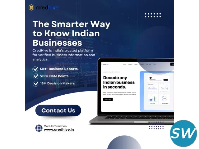 Looking to find Indian business information efficiently? Access detailed Indian company information including registration details, directors, financials, and contact information. Whether you are an investor, supplier, or entrepreneur, having verified data helps you make informed decisions and avoid risky partnerships. With advanced tools, you can search company information quickly and accurately. Platforms like Credhive provide up-to-date and reliable business information, making it easy for you to identify trustworthy companies across India. Reduce uncertainty, strengthen partnerships, and grow your business confidently with verified insights.