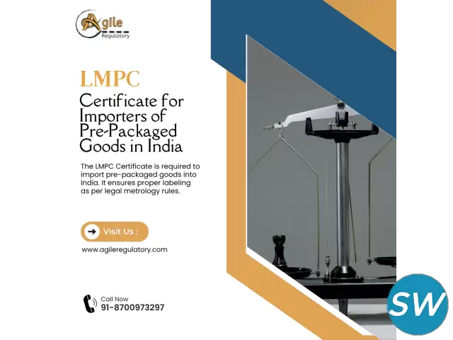 LMPC stands for Legal Metrology Packaged Commodities Certificate. It is mandatory for importers and manufacturers dealing with packaged goods in India. The LMPC certificate ensures compliance with labeling norms under the Legal Metrology Act. At Agile Regulatory, we provide expert assistance for LMPC certificate registration, documentation, and timely approval from the Department of Legal Metrology. Reach out now to simplify your compliance process and avoid penalties.