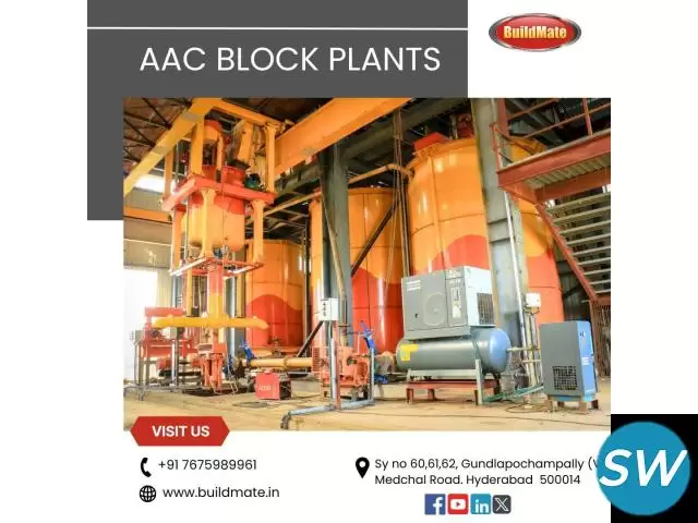 Buildmate offers high-quality AAC Block Plants in Hyderabad, featuring advanced technology for efficient and eco-friendly block production. Committed to innovation and reliability, Buildmate helps boost construction productivity. Rely on Buildmate for trusted AAC block solutions and exceptional service in Hyderabad.