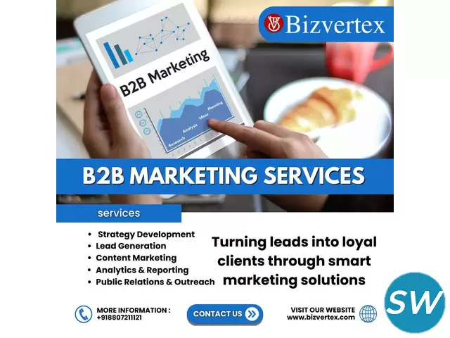 Looking to grow your business rapidly? Partner with Bizvertex, the leading B2B Marketing Agency, for proven strategies that drive results. Our B2B Marketing Services are tailored to maximize lead generation, foster meaningful client relationships, and enhance brand visibility. With innovative approaches and market insights, we ensure your business reaches its target audience effectively. Choose Bizvertex to optimize your B2B marketing efforts and achieve measurable growth in today’s competitive landscape.