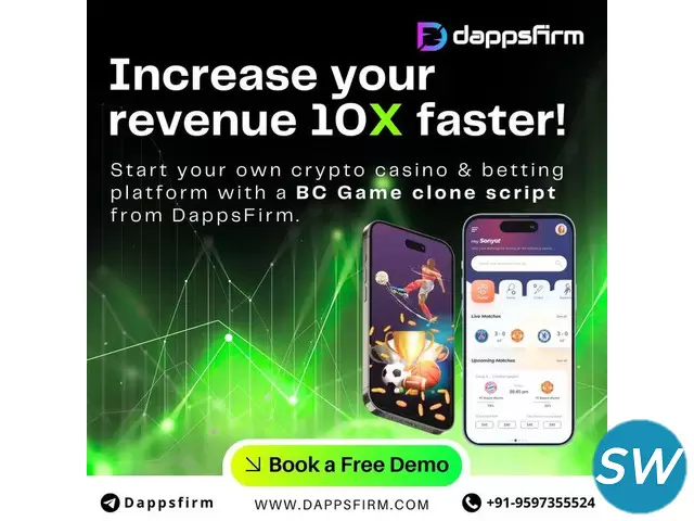 Make your mark in the world of crypto casinos with the BC.Game Clone Script. Designed to help you build a secure, attractive blockchain gaming platform like BC.Game, this script offers great features and an engaging UI. Start attracting gamers from across the globe today! DappsFirm offers the BC.Game Clone Script at minimal cost and quick launch—so you can bring your idea to life instantly!