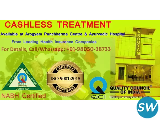 Arogyam Panchkarma Centre & Ayurvedic Hospital is one of the few Ayurvedic Hospitals in India that has been approved for cashless treatment by a few insurance companies and third-party administrators. Arogyam Panchkarma Centre & Ayurvedic Hospital is also registered with the Insurance Regulatory and Development Authority (IRDA) under the Registry of Hospitals in Network of Insurance (ROHINI). Arogyam Panchkarma Centre & Ayurvedic Hospital is also in the process of being certified as an ayurvedic institution with high standards for providing treatments and amenities to patients by the National Accreditation Board for Hospitals (NABH).