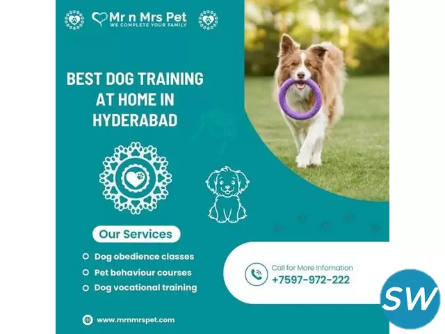 Are you looking for a Dog Training in Hyderabad? Mr n Mrs Pet Professional trainers in the city offer a variety of programs tailored to meet the needs of both dogs and their owners. From basic obedience training to advanced behavioral modifications, skilled trainers utilize positive that foster a strong bond between you and your furry friend. If you want to get your pet dog training in Hyderabad, then contact the expert trainer today on our given number