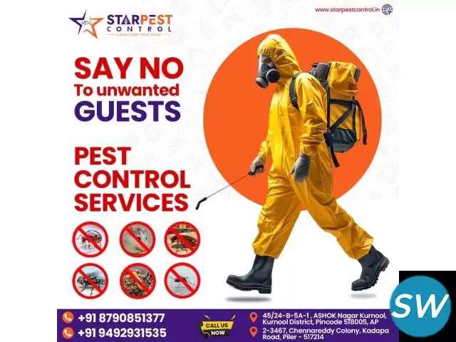 Tired of flies and spiders invading your space? Get the best flies and spider pest control services in Kurnool with Star Pest Control! Our professional team ensures effective removal of flies and spiders using advanced pest control techniques. Whether you're facing an infestation in your home, restaurant, or commercial space, we provide long-lasting pest control solutions to keep your environment safe and pest-free. Contact us today for expert pest control in Kurnool!