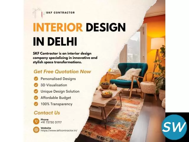 Searching for the best interior design in Delhi to transform your space? SKF Contractor offers innovative and stylish interior solutions tailored to your needs. Whether it’s a home, office, or commercial space, our expert team combines creativity and functionality to craft breathtaking interiors that reflect your personality and vision.