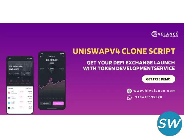 Our Uniswap V4 clone script is a market-ready, instantly launchable decentralized exchange software designed to replicate the core functionalities of the original Uniswap V4 platform. Perfect for entrepreneurs and startups, this solution comes with next-gen DeFi protocols and customizable features, enabling you to build a powerful DEX with maximum security and privacy.