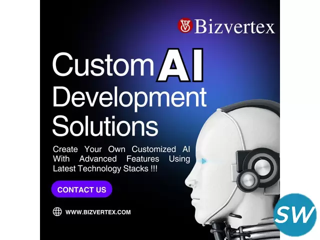 Bizvertex, the leading AI Development Company, delivers tailored AI solutions to drive your business forward. Specializing in Custom AI Services, we partner with enterprises to create next-gen innovations that optimize operations, enhance decision-making, and boost growth. With cutting-edge technology and industry expertise, Bizvertex transforms challenges into opportunities, ensuring your business stays ahead in the competitive landscape. Choose Bizvertex for a strategic edge in the evolving world of artificial intelligence.