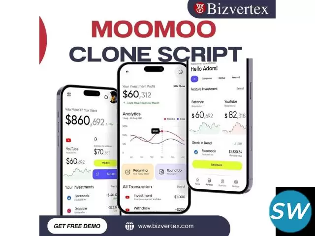 Empower your fintech journey with Bizvertex’s tech expertise. Launch your custom trading platform now with the power of the MooMoo Clone Script from Bizvertex—your smart trading technology partner.
