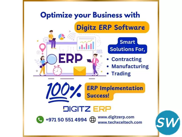 Digitz ERP Software is designed specifically for contracting companies, manufacturing firms, and trading businesses. It helps you manage projects, streamline operations, and optimize resources in one easy-to-use system. With real-time insights and smart features, Digitz ERP simplifies your processes, saves time, and boosts efficiency. Empower your business with Techxcel Technologies’ tailored ERP solution.