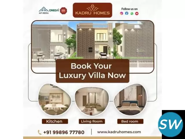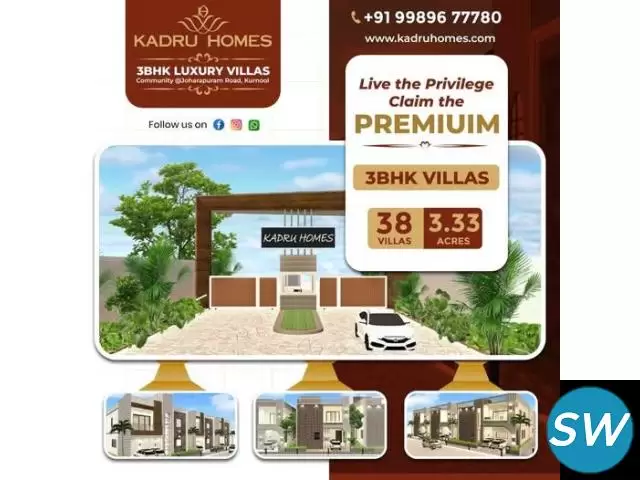Looking for the perfect luxury villa in Kurnool? Discover 3BHK luxury villas at Kadru Homes, offering elegant designs, premium interiors, and world-class amenities. These villas provide the ideal blend of comfort and sophistication, making them perfect for your dream living experience in Kurnool. Choose Kadru Homes for a lifestyle upgrade.