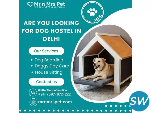 Are You Looking for Dog Hostel in Delhi? Mr n Mrs Pet in Delhi offers dog hostel that provide a safe, comfortable, and playful environment for your pet. With experienced staff, your dog will enjoy plenty of attention, daily walks, and proper nutrition. Count on us to provide your pet with the best care and a great time! Book your Dog Hostel in Delhi online today and be worry free; Contact us now for a rewarding dog hostel experience!