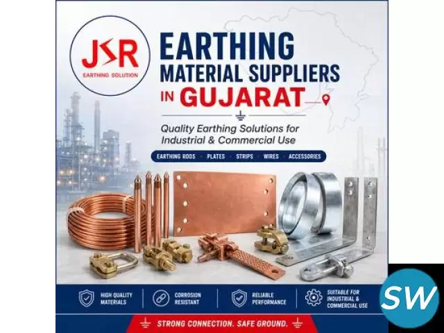 Find reliable earthing material suppliers in Gujarat offering high-quality earthing rods, copper plates, GI strips, wires, clamps and complete earthing accessories. Get durable and efficient earthing solutions for industrial, commercial and residential projects with strong safety, long life and trusted product quality.