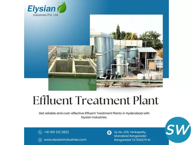 Elysian Industries is a trusted leader in effluent treatment plants in Hyderabad. With advanced technology and extensive expertise, we deliver efficient, eco-friendly solutions for industrial effluent management. Dedicated to regulatory compliance and environmental sustainability, Elysian Industries ensures effective purification, contributing to a cleaner and greener Hyderabad.
