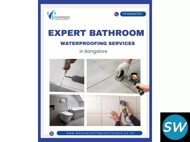 VS Waterproofing offers Expert Bathroom Waterproofing Services in Bangalore, specializing in toilet ceiling waterproofing to prevent leaks, dampness, and structural damage. Our skilled team uses advanced techniques to seal vulnerable areas and protect bathrooms from moisture-related issues. We also provide professional tile grouting services, ensuring gaps between tiles are properly filled to stop water seepage and maintain a clean, durable finish.