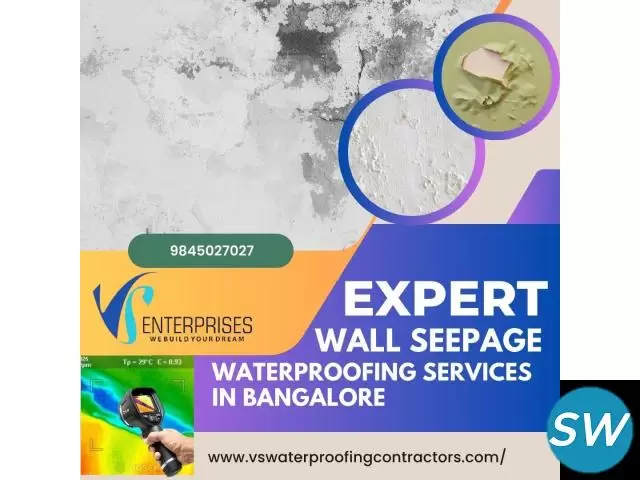 VS provides Expert Wall Seepage Waterproofing Services in Bangalore, providing effective protection against moisture-related problems in homes and commercial buildings. We specialize in treating wall dampness caused by rainwater penetrations, plumbing issues, and structural cracks. Our experienced team carefully identifies the sources of Internal Leakage and applies advanced techniques to stop seepage at the root. Using proven materials and modern methods, we design a reliable waterproofing solution that enhances wall strength and prevents paint peeling, mold growth, and long-term damage.