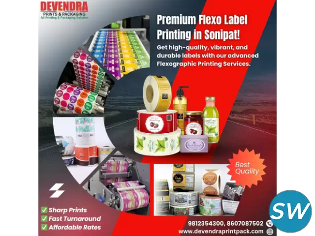 Devendra Prints & Packaging is a leading flexo label printing company in Sonipat, offering reliable and cost-effective label solutions. From product information to branding, our labels are designed to last while enhancing your packaging with professional, eye-catching designs.