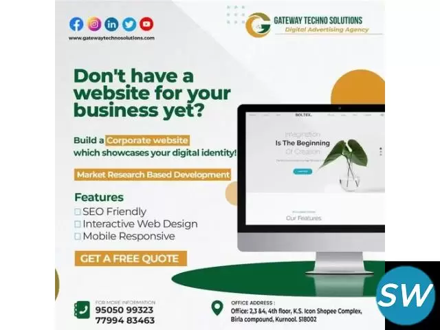 Gateway Techno Solutions is your one-stop solution for creative logo design, modern web development, and impactful digital marketing. Our services include SEO optimization, social media campaigns, and professional graphic design to help you stay ahead of competitors. With a focus on brand-building and performance, we d...