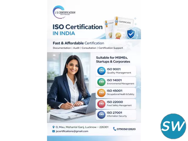 Achieve global recognition with reliable ISO Certification in India services. Our experienced consultants guide you through documentation, audit processes, and certification to ensure compliance with international standards. Improve quality management, build brand credibility, and increase business opportunities with our hassle-free certification solutions.