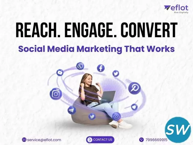 Eflot specializes in Social Media Marketing services that help businesses grow and thrive online. Our expert team creates smart strategies tailored to your brand, boosting engagement, increasing visibility, and driving real results. Whether it’s Facebook, Instagram, Twitter, or Pinterest, we make sure your brand reaches the right audience and converts followers into loyal customers.