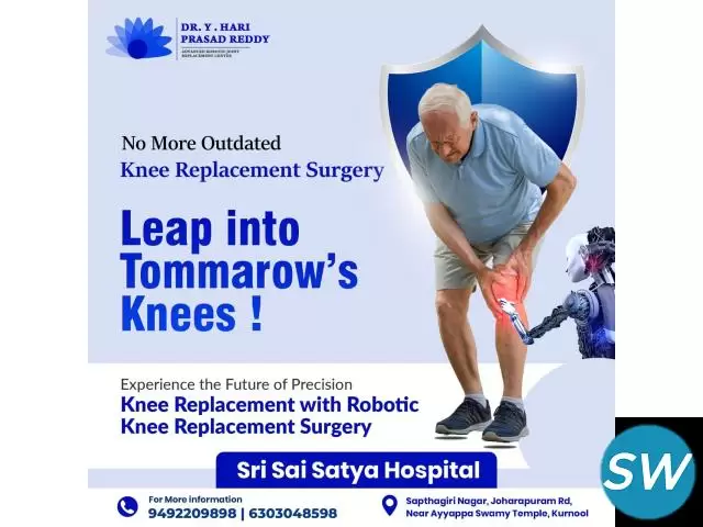 Sri Sai Satya Hospital in Kurnool, led by Dr. Y. HariPrasad Reddy, is renowned for joint replacement surgeries. Equipped with the latest robotic technology, the hospital provides comprehensive care for knee, hip, and shoulder replacements, ensuring faster recovery, enhanced precision, and long-lasting patient results.
