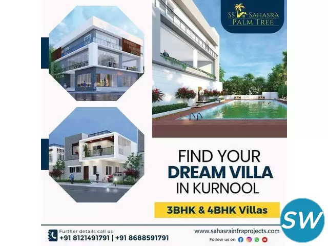 Discover a life of opulence at SS Sahasra Palm Tree, where luxury meets comfort. Our 3BHK and 4BHK independent villas redefine modern living, offering exclusive amenities like a state-of-the-art Gym and a refreshing Swimming Pool. Elevate your lifestyle in the heart of Kurnool.