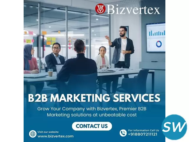 Looking for a B2B marketing firm focused on delivering results? Bizvertex is your go-to solution! We specialize in crafting personalized marketing strategies tailored specifically for B2B companies aiming to enhance their digital presence. As a leading B2B agency, we recognize that marketing to businesses demands a unique approach. From developing compelling content to nurturing leads, our services are customized to meet your business goals. What sets Bizvertex apart from other B2B marketing companies is our innovative techniques that consistently deliver measurable success. With Bizvertex as your trusted marketing agency for B2B, you're just one step away from achieving your goals!