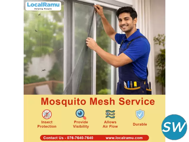 Mosquitoes, insects, and flies entering through doors and windows can disturb your comfort and affect family health. Ignoring this issue often leads to poor sleep and hygiene problems. With LocalRamu, you will get expert mosquito mesh service that keeps insects out while allowing fresh air inside.