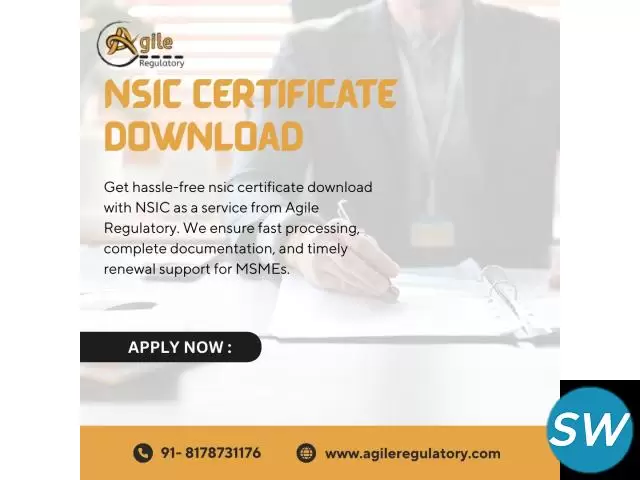 Download your NSIC certificate effortlessly with Agile Regulatory. Our expert assistance ensures secure, verified, and fast certificate access for MSMEs. Stay compliant, leverage NSIC benefits, and streamline your regulatory obligations without delays. Trusted service designed to save time and simplify documentation.