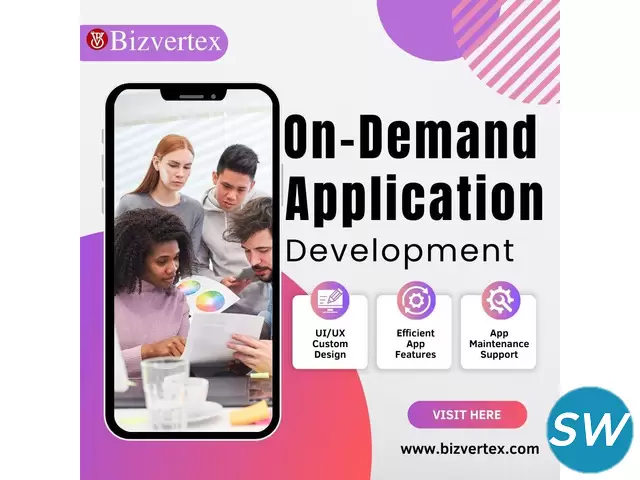 Bizvertex stands as the top-tier On Demand App Development Company, delivering tailored On-Demand App Development Services to transform your business goals into dynamic mobile solutions. Our On-Demand Software Development expertise ensures a seamless user experience and cutting-edge functionality, customized for your industry. Partner with Bizvertex to create an app that drives engagement, enhances customer satisfaction, and accelerates growth, positioning your business for success in today’s competitive digital landscape. Contact us to create now!