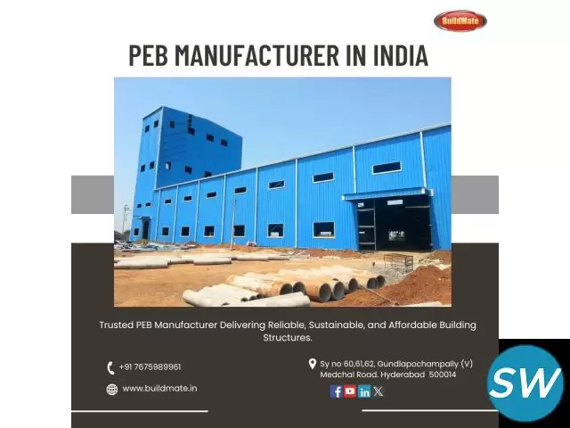 Buildmate, a leading PEB manufacturer in India, offers customized pre-engineered building solutions designed to suit diverse project requirements. With a focus on advanced technology and long-lasting performance, Buildmate delivers cost-effective, high-quality PEB structures for various industries. Trust Buildmate for innovative design and construction that meet top industry standards.