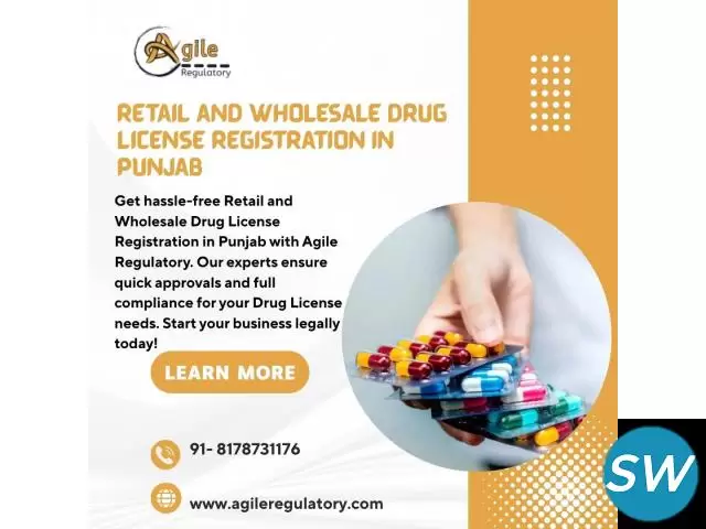 Agile Regulatory offers complete solutions for Retail and Wholesale Drug License Registration in Punjab. Ensure smooth and legal business setup with our Drug License services.