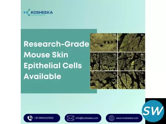 Mouse Skin Epithelial Cells are essential for dermatology, wound healing, and skin regeneration research. Mouse skin epithelial cells line the outermost layer of the skin and play a key role in barrier protection and cellular signaling studies. Kosheeka manufactures high-quality, research-grade cells under controlled laboratory conditions to support scientific and preclinical research applications. Ideal for academic institutions, biotech labs, and research organizations seeking reliable cell culture solutions.