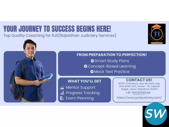 At Jyoti Judiciary Coaching, we train students through focused Rjs coaching programs led by experienced mentors. Aspirants looking for Rjs coaching in Jaipur choose us for structured classes, updated materials, and disciplined preparation. Our approach makes us a strong choice for those seeking the best Rjs coaching in Jaipur and reliable judiciary coaching in Jaipur. We guide each learner with performance analysis, doubt solving, and answer practice.
