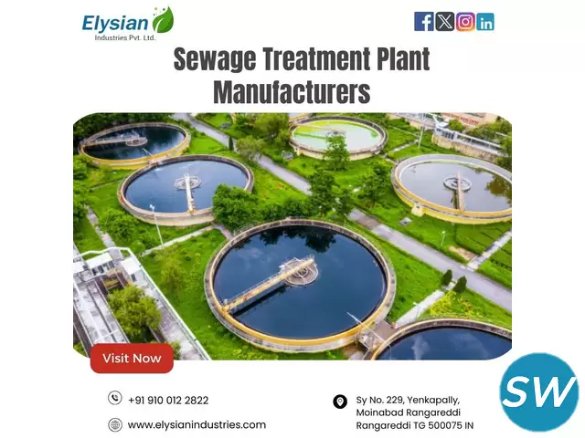 Searching for dependable Sewage Treatment Plant Manufacturers in Hyderabad? Elysian Industries delivers innovative and efficient wastewater management solutions. With state-of-the-art technology and customized designs, we cater to both industrial and residential requirements. Trust Elysian Industries for sustainable, eco-friendly, and expertly crafted sewage treatment systems in Hyderabad.