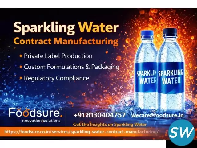 Foodsure provides professional Sparkling Water Contract Manufacturing services with complete support from formulation to final packaging. Our solutions include private label production, regulatory compliance, and high-quality packaging to ensure premium results. With advanced processes and industry expertise, Foodsure helps brands scale efficiently and deliver refreshing sparkling water products to the market with consistency and reliability.
