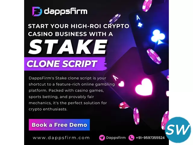 A Stake clone script is a pre-built software solution designed to replicate the functionality of the Stake casino platform, enabling users to launch a feature-rich online gambling platform quickly. It includes casino games, sports betting, and crypto integration. Ideal for startups aiming for a high ROI in the online gaming industry, this script ensures seamless user experience and customization. Dappsfirm offers a whitelabel Stake clone script at minimal cost, ensuring quick launch and tailored solutions to meet your business needs.