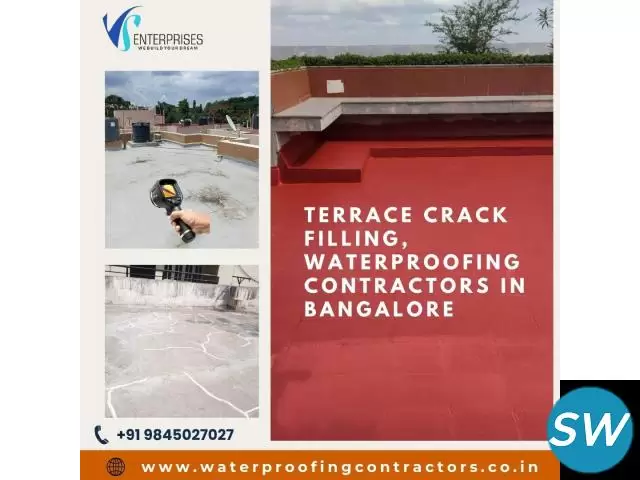 VS Waterproofing is a leading Service Provider for terrace crack filling waterproofing contractors in Bangalore, providing reliable waterproofing services to protect your roof and terrace from water seepage and structural damage. We specialize in floor crack repair, using high-quality materials and advanced methods to seal and strengthen surface cracks effectively. Our personalized waterproofing solutions are designed to withstand harsh weather conditions, ensuring long-lasting protection for your terrace.