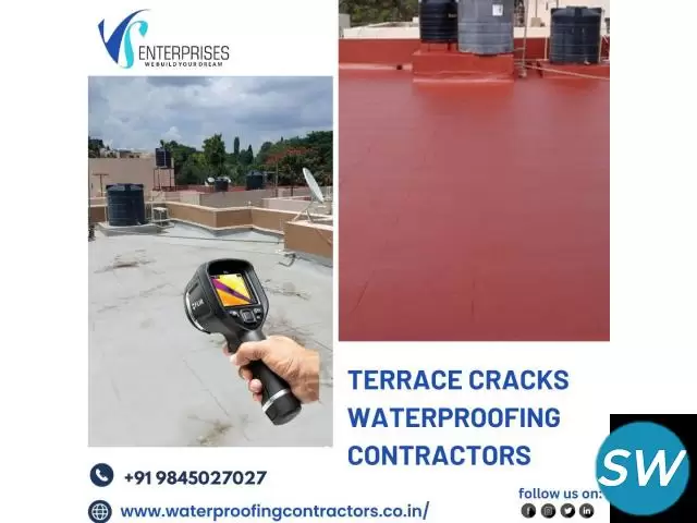 VS Waterproofing specializes in effective terrace crack waterproofing contractors in Bangalore, fixing common issues such as water seepage and cracks. Protecting your terrace is the goal of our expert team's work, which includes crack filling for damaged floors and roof dampness treatments. Our comprehensive approach ensures a durable solution to prevent future leakage. For More Details Visit https://waterproofingcontractors.co.in/terrace-waterproofing-contractors.php