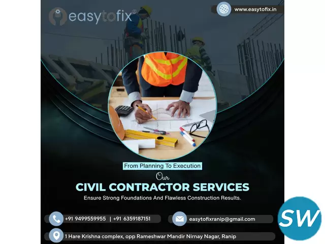 Do you need reliable and skilled Civil Contractors in Ranip? We provide professional civil construction services for residential, commercial, and industrial needs, from site excavation and earthworks to road construction and structural foundations.