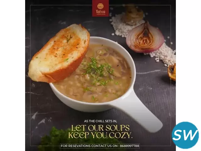 Tatva Restaurant is a celebrated fine dining destination in Hyderabad, offering a delightful culinary journey across multiple cuisines. Renowned for its elegant ambiance and impeccable service, Tatva caters to those seeking a luxurious vegetarian dining experience. With a menu that seamlessly blends Indian, Continental, and Asian flavors, Tatva promises something for every palate. Whether you're planning a family dinner, a romantic date, or a special celebration, Tatva's refined atmosphere and divine flavors make it the perfect choice. Located at prime spots like Jubilee Hills, Begumpet, and Kokapet, Tatva is your ultimate destination for exquisite vegetarian cuisine in Hyderabad.