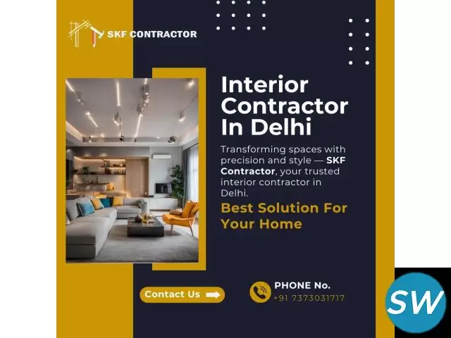 one company that stands out in this regard is SKF Contractor. Based on your search history, you've shown interest in them, suggesting they might be a suitable option to explore for your interior needs in Delhi. They are likely to offer a range of services, potentially including residential and commercial projects, and could be worth contacting to discuss your specific requirements.